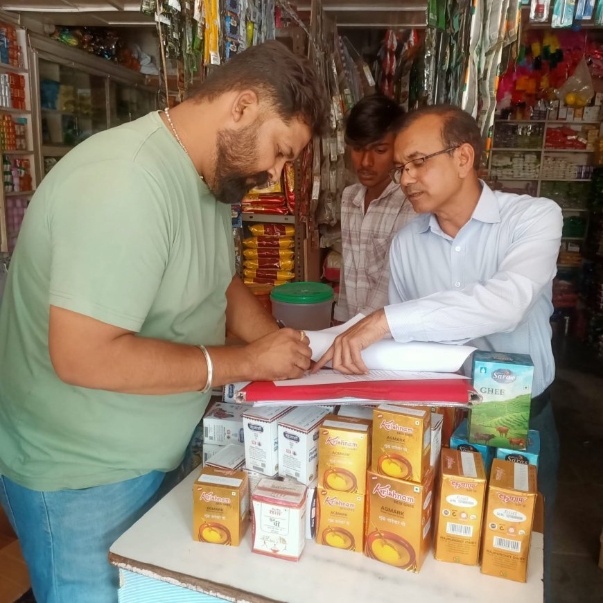 खाद्य सुरक्षा अधिकारी की टीम आने की सूचना पर कई दुकानदार लोग अपनी दुकान बंद करके चले गए खाद्य सुरक्षा अधिकारी राजेंद्र त्रिपाठी ने बताया कि मिठाई की दुकान से पनीर एवं जनरल स्टोर से की का सैंपल कलेक्ट कर लिया था तथा लैब में जांच के बाद यदि घी नकली ब्रांड का पाया जाता है तो संबंधित निर्माता कंपनी के खिलाफ कार्यवाही की जाएगी इधर दुकानदार अभिषेक सोमानी ने खाद्य सुरक्षा अधिकारी को बताया कि माल ब्रांडेड एवं बिल लिया हुआ है अगर कहीं गलत मार्केट डिलीवरी हुई है तो कंपनी की जिम्मेदारी है।